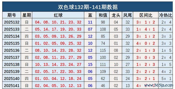 双色球第2025141开奖奖号:红球02、04、05、10、12、13,蓝球06。和值46,龙头02,凤尾13,区间比4:2:0,冷热比0:6。蓝球开出极少号码06。